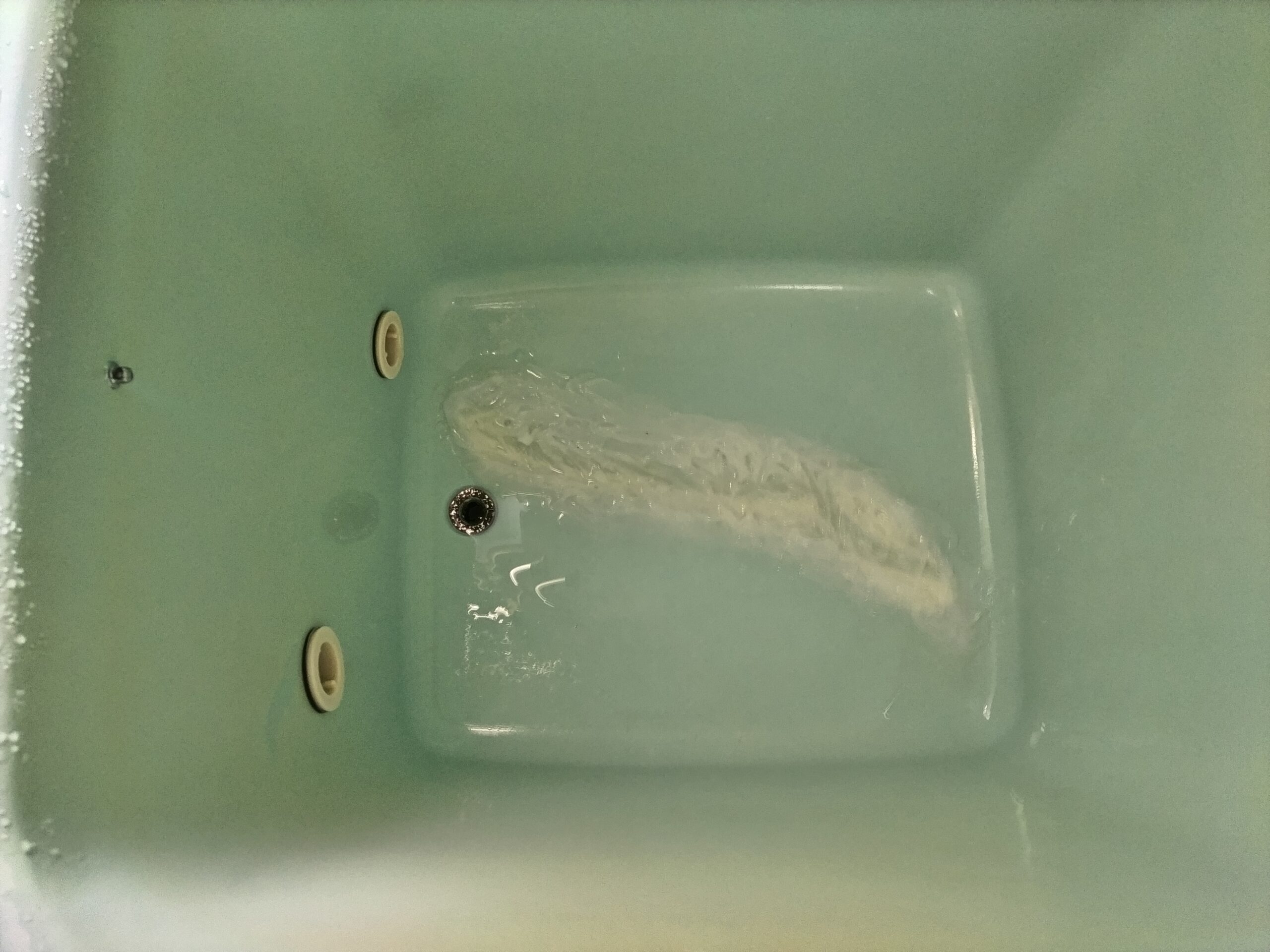 N様から『浴槽の底が割れてしまい、自分で補修したけどお湯が漏れてしまうので取替えたい』と