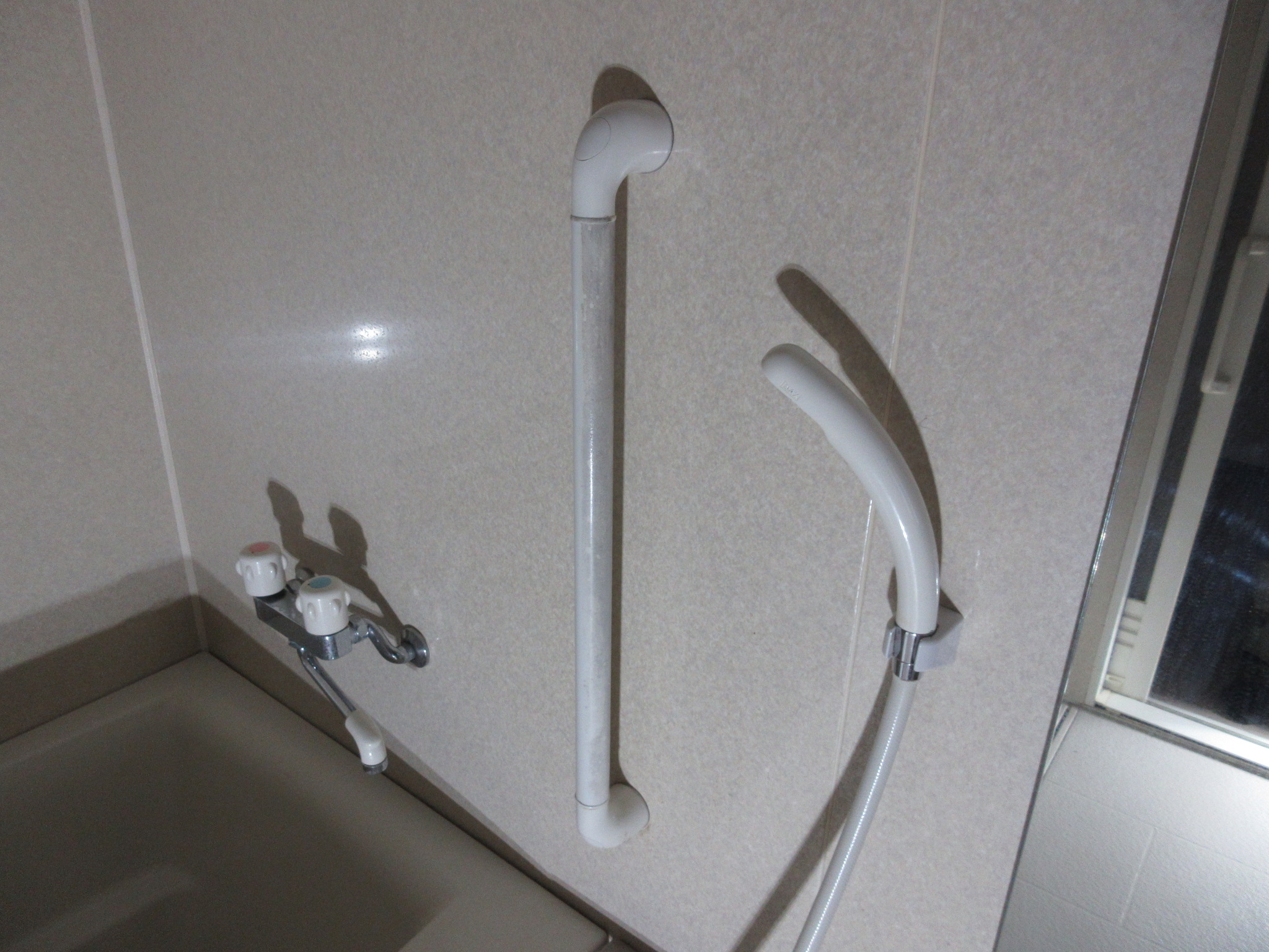 連絡を頂き現場を確認。システムバスに付いているI型手すりを取替える工事が完成しました。