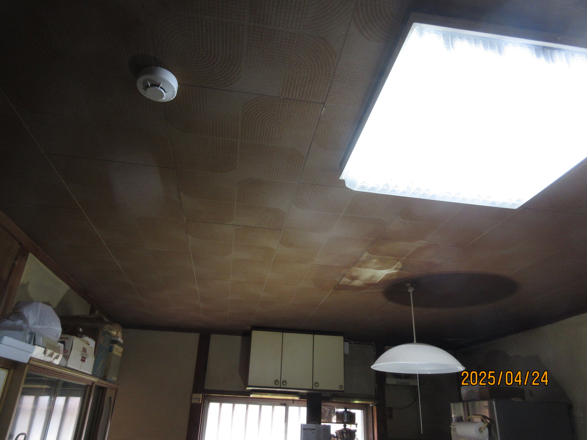 長年のニコチンと油汚れで天井が変色し、部屋全体が暗い状態だったので、塗装が出来る事を説明。